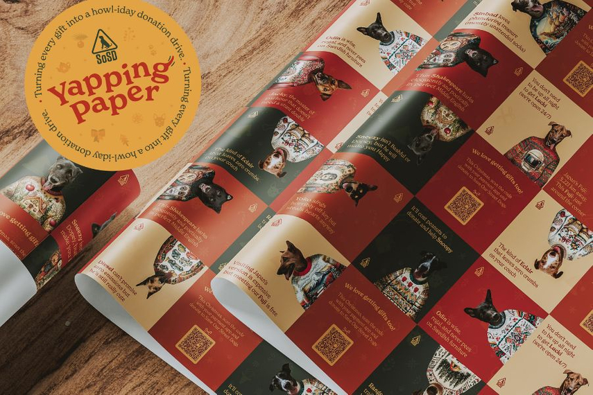 クリスマスを目前に、シンガポールの動物福祉団体「Save Our Street Dogs(SOSD)」とマッキャン・シンガポール(McCann Singapore)がラッピングペーパーのキャンペーンを展開した。保護犬が印刷された包装紙「Yapping Paper」は、動物病院や店舗などで今月16日から販売されている。