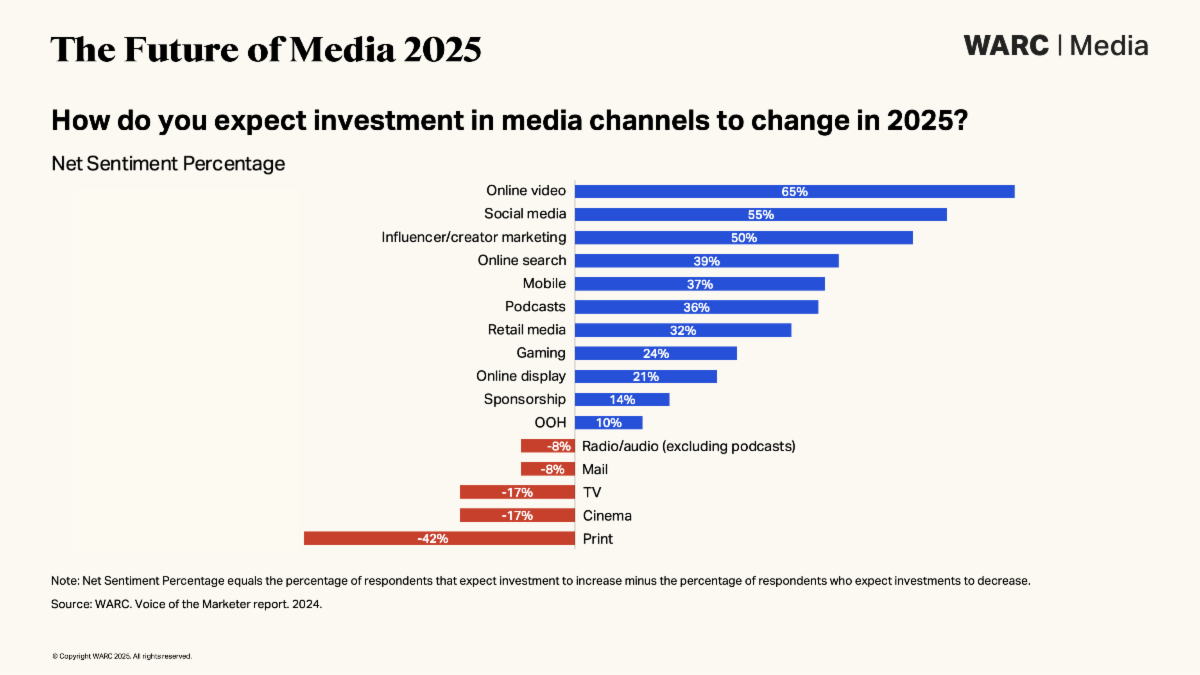 WARCの調査およびインサイト担当マネージングエディターであるポール・ストリンガー氏は「広告主は広告を出稿するメディア環境を選ぶうえで、コストよりも品質を重視するようになりました。AIを活用したメディアソリューションの成長と、リテールメディアやコマースメディアネットワークの参入によって、シグナルの精度が向上しています」とコメントしている。