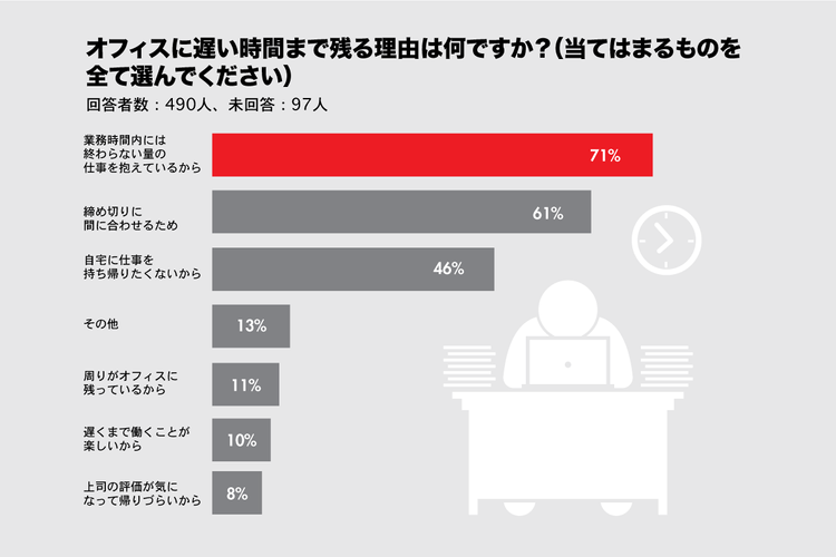 過重労働は、広告界が抱える根深い問題だ。広告をはじめとするさまざまな業界で、過重労働が成長を阻む足かせとなっていることは言うまでもない。働き方改革についてはさまざまな議論が巻き起こっているが、まとまらないまま終わりがちだ。そこで我々は、職場環境に関する調査の第一弾のテーマを「働き過ぎていると感じているか」に設定した。