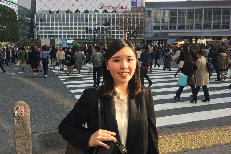 博報堂DYデジタルに入社する22歳の長野真鈴氏は、通常の就職活動を全う。同じく英国に留学、モバイルゲーム制作のスタートアップ企業「ガイア」やマッキャン・ワールドグループでインターンシップを経験した。