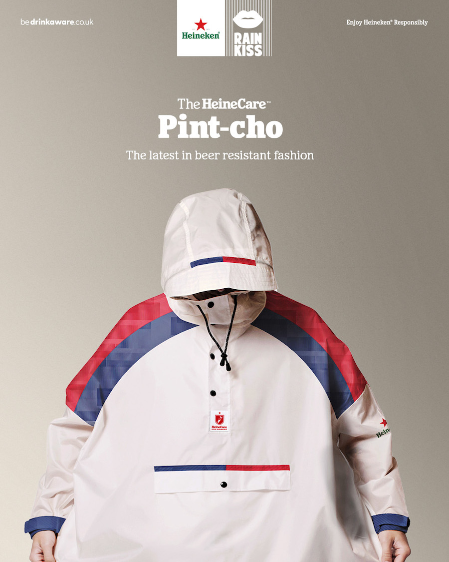 また、アムステルダムに本拠を置く雨具ブランド「レインキス(Rainkiss)」とコラボレートし、こぼれたビールで衣服が汚れないよう着用するポンチョを作成した。キャンペーンに参加しているパブで無料配布する他、ソーシャルメディアで抽選も行う。