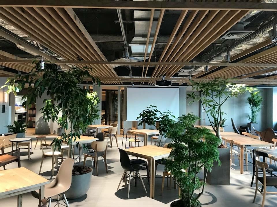 結果はなかなか見事だ。面白みのない灰色のカーペットや凡庸なオフィス家具は一掃され、木の床や間接照明、観葉植物などが心地よい雰囲気を醸し出す。新宿にあるLINEの新オフィスとも、どことなく似ている。
